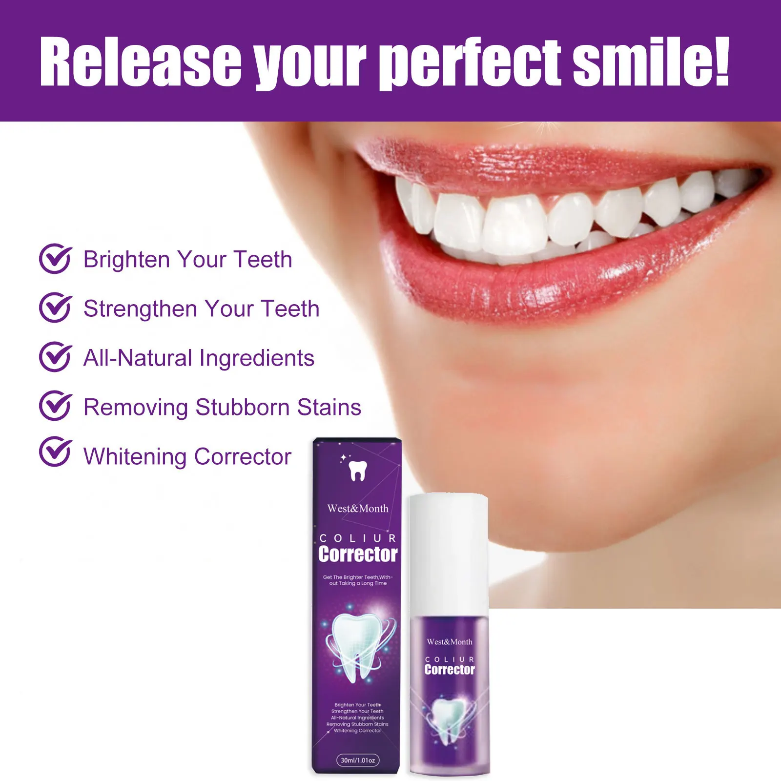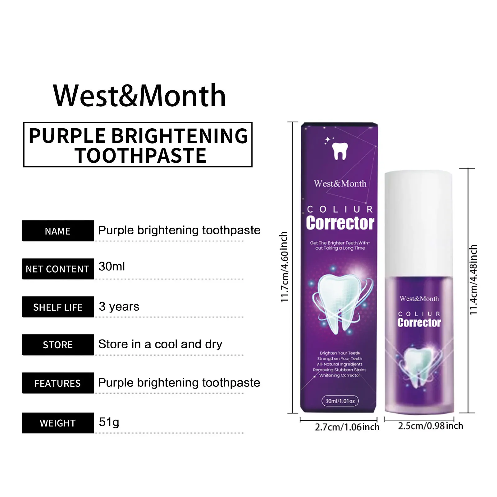 West&Month Purple Whitening Toothpaste Remove Stains Reduce Yellowing Teeth Color Correcting Brightening Repairing Fresh Breath Gums Care 30ml