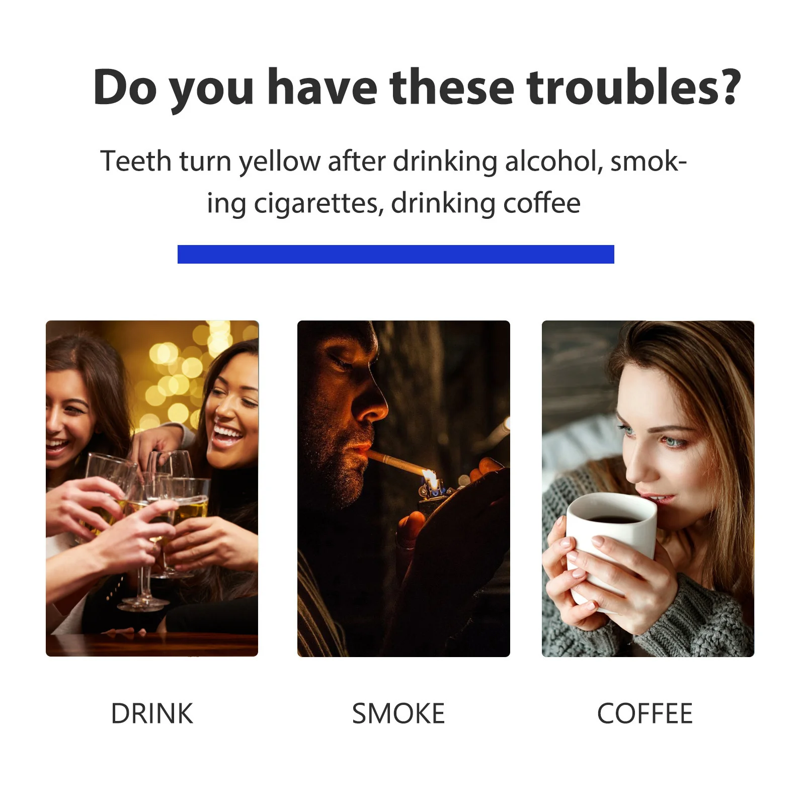 2. Remove plaques, stains, and discoloration, penetrate into the gaps of tooth enamel, remove food residue and deep stains embedded in it, and release your perfect smile!